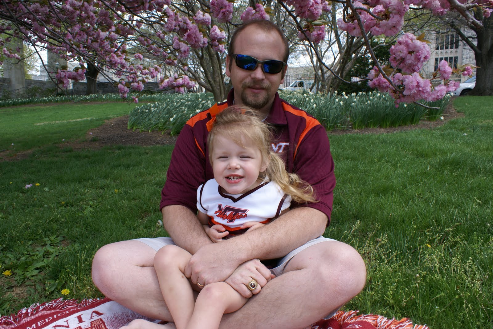 4.16.10. 3 years after our community was changed forever. I say community because the school is forever growing, the students are forever changing, but the spirit of the community remains the same. We all came together once again to celebrate the lives of 32 Hokies. While attending many of the activities has been deemed nearly impossible with 2 wee tots, we did manage to make it to campus for the picnic on The Drillfield (Bryan was able to work from home, and took some extra time at lunch to come with us). We were lucky enough to find this AMAZINGLY beautiful tree to enjoy some quality family time.
